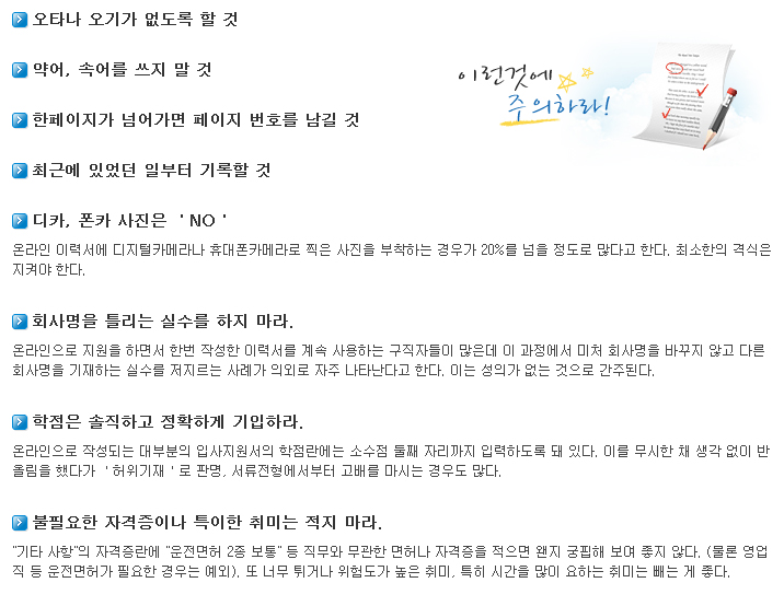 [이력서] 이력서 작성시 주의사항